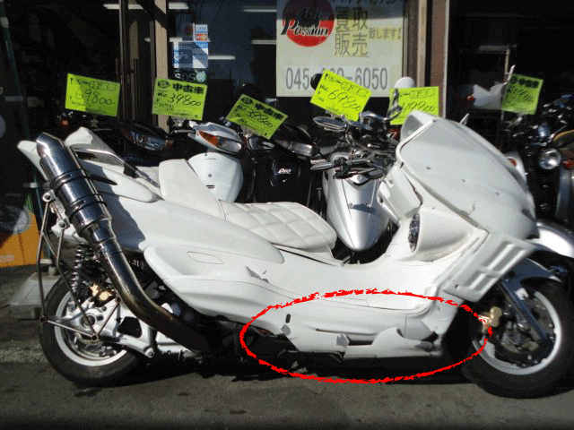 改造多数のカスタム車両(ノーマルパーツ保有)。右側転倒傷・カウル破損。
