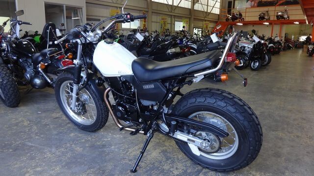 ガレージ保管で雨の日走行なく、劣化が出やすい車体底面や足回りなども綺麗な状態を維持していて大切に扱われていたことが伝わってきたTW225E