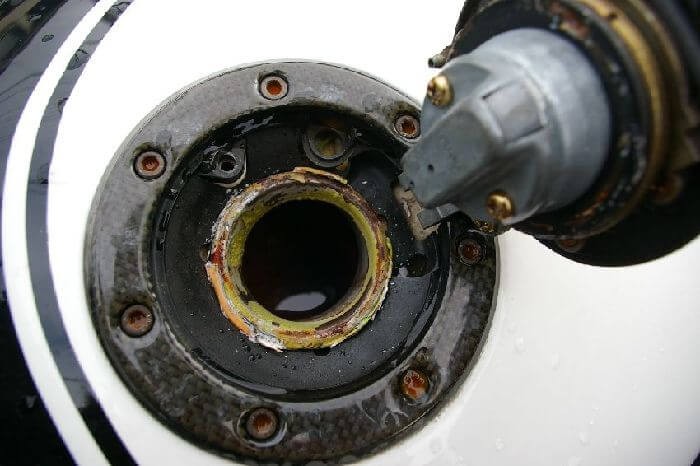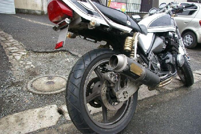 1997年式としては外装は綺麗ですが、マフラー転倒傷や、エンジンオイル漏れ、足回りの疲労感や錆び、タンク内錆びなど各所に軽めの減点項目あり