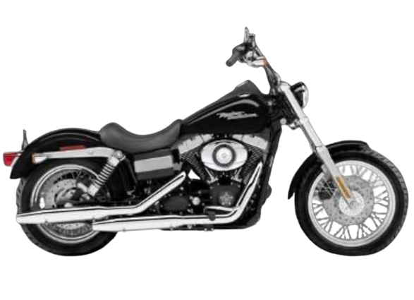 モチーフはダイナファミリーの始祖とも言うべきFX1200 スーパーグライドで、祖先を強く意識したエイプハンドル採用により、チョッパースタイルを見事に再現。悠揚迫らずゆったりとしたポジショニングと各部にあしらわれたブラック仕上げパーツの数々により、カスタムハーレーの風格漂うモデルへと仕上げられております。前後16インチホイールによるクイックな操縦感、シート高655mmという低さによる足つき性、日本人の体格にもマッチするミッドコントロールなど、ハーレー入門モデルとしてこの上なくフレンドリーな作りが好調なセールス結果に繋がったと言えるでしょう。しかし、ゆったりと乗れる大人のクルーザー、といったイメージだけではなく、49mm径の図太いフロントフォーク、見た目以上にホールド性の高いシートは走りの質を高める設計になっており、モーターサイクルとしての基本性能に関しても高水準。トレードマークであるエイプハンドルは、操縦の上で意外なほどクセがなく、取り回しに関しても250cc並みにイージー。街乗り時の操作に関する不安を感じさせず、渋滞路でも不便さを感じさせません。優雅に流す走りだけではなく、その気になればいつでもスポーツを楽しむことができ、ダイナファミリーらしい守備範囲の広さが感じられるお買い得モデルです。2007年モデルには全7色のカラーリングが設定され、ビビッドブラック、ブラックデニム、ディープコバルトパール、ブラックチェリーパール、ピューターデニム、パシフィックブルーデニムの6色が新車販売価格177万5000円。ツートーンカラーのオリーブパール&ビビッドブラックは180万6000円に設定されました。