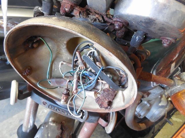 そこから覗くケーブルはサビに侵され、電装系も価値を見出すことは難しい状態になっておりました。